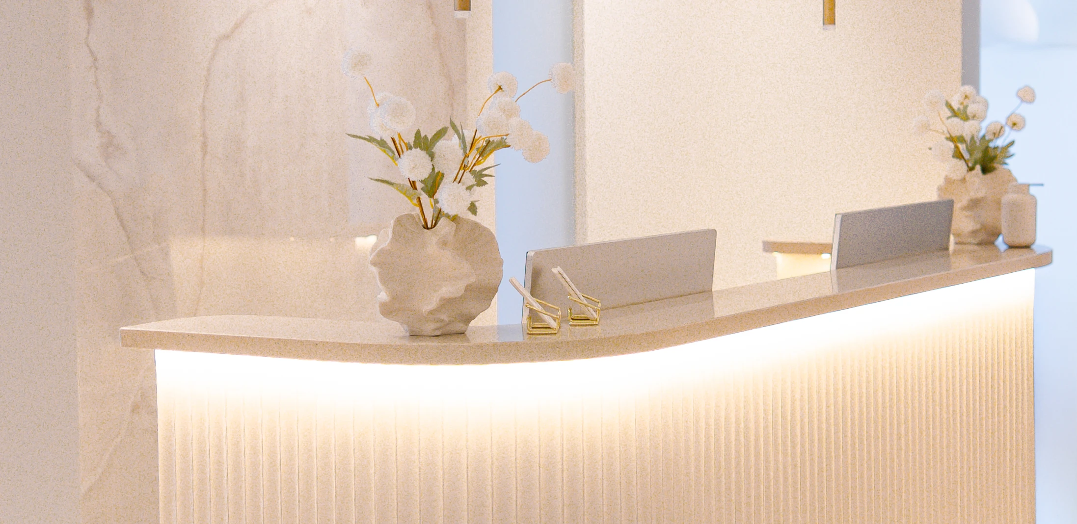 Le cabinet en top-floor du Palais Joséphine comprend deux salles de soins, une salle de radiologie, une salle de stérilisation, un espace hygiène bucco-dentaire et plusieurs espaces de détente vue mer et Monaco.